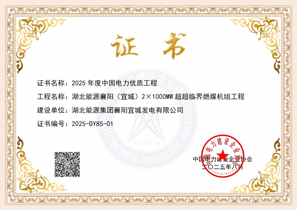 襄阳宜城发电公司获评2025年度中国电力优质工程奖