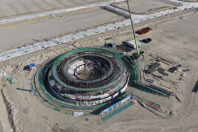 修(xiu)通15.7公里道(dao)路、平(ping)整167.35萬方場地、澆(jiao)筑4.2萬方混(hun)凝土、架(jia)起(qi)13.5公里廠區臨時(shi)用電線路、敷設5.4公里廠區管道、壘砌(qi)5.5公(gong)里(li)圍墻,主(zhu)廠房全面(mian)開(kai)工建設,間冷(leng)塔和煙囪基礎完成開(kai)挖……如今,4平方公(gong)里的戈壁灘上,近(jin)百臺挖掘機(ji)、渣土(tu)車、起重機(ji)等各類機(ji)械作業繁忙、機(ji)器轟鳴,超千名建設人員穿梭其(qi)中,一派如(ru)火(huo)如(ru)荼(tu)的景象(xiang)。