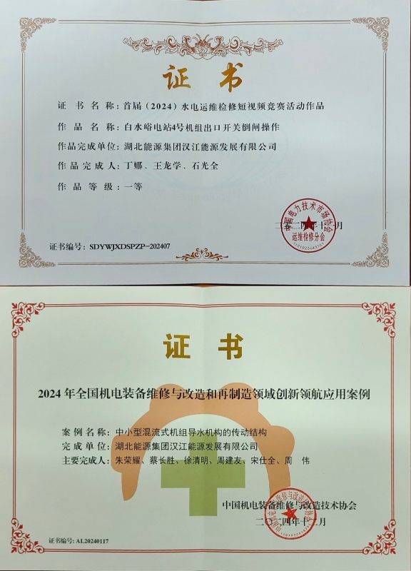 本網訊(丁娜)近(jin)日,漢江能(neng)源公司制作的《白水峪電(dian)站4號機組出口開關倒閘操作》短(duan)(duan)視(shi)頻(pin)榮獲(huo)中國電力技術(shu)市場協會運維檢修分會首屆水電運維檢修短(duan)(duan)視(shi)頻(pin)競賽一等(deng)獎,《中小型水輪發(fa)電機(ji)組(zu)的傳動(dong)機(ji)構》案(an)例被(bei)評為2024年全國機電裝備維修與改造和再制(zhi)造領域創(chuang)新(xin)領航應用案(an)例。