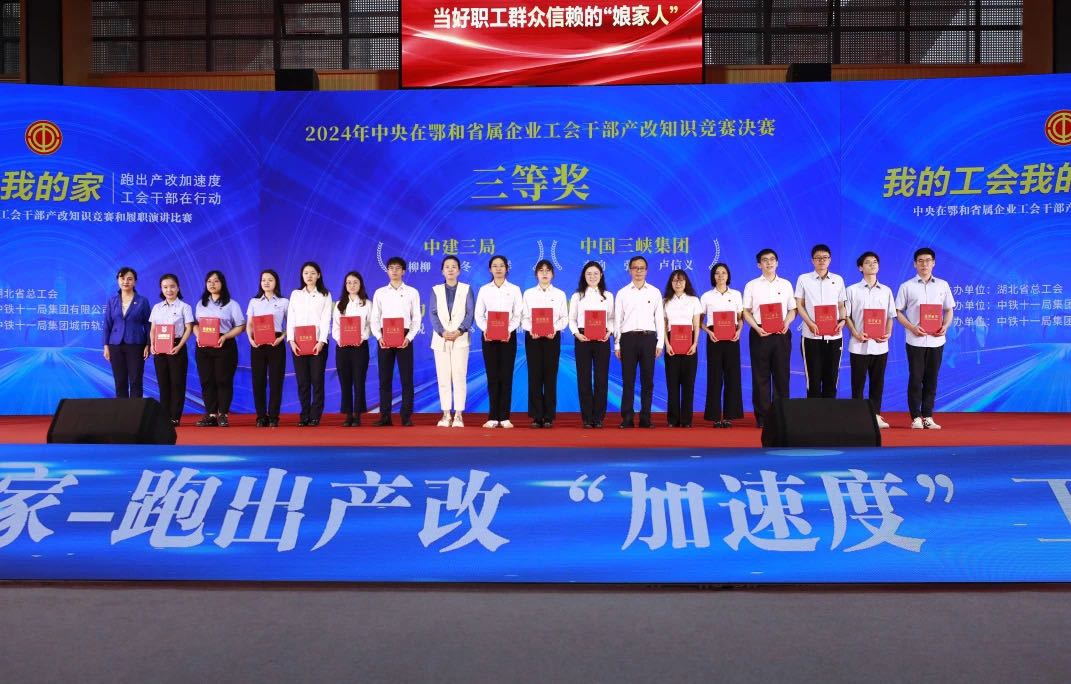 本網(wang)訊(李響(xiang))近日,由湖北省總工(gong)會(hui)主辦的(de)2024年(nian)中央(yang)在鄂和(he)省屬企(qi)業工(gong)會(hui)干部產改知(zhi)識(shi)競(jing)賽(sai)和(he)履職演講比(bi)賽(sai)決賽(sai)在漢圓滿落幕,湖北能源(yuan)工(gong)會(hui)主席李春華(hua)出席決賽(sai)閉(bi)幕式。由湖北能源(yuan)李響(xiang)、盧信(xin)義、張宇3名職工(gong)組成的(de)三(san)峽集團代表(biao)隊(dui)榮獲“產改知(zhi)識(shi)競(jing)賽(sai)我知(zhi)道”知(zhi)識(shi)競(jing)賽(sai)三(san)等獎。